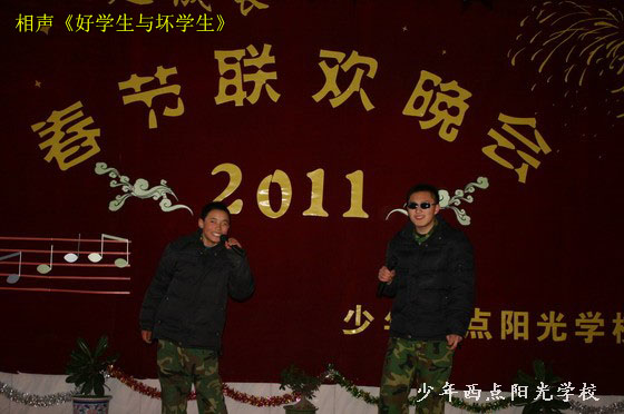 随着冬日里温暖的阳光,2011年春节即将来临。在这春意融融的日子,1月29日下午4点,由我校教育训练处和团支部承办的春节联欢晚会在学校一楼礼堂举行,我校全体师生欢聚一堂,校长陈锋致辞,学校心理学专家戚道芳教授发表热情洋溢的讲话。本次文艺演出经过了教育训练处和团支部的精心策划和准备,所有节目都是由学生和教员自编自演,节目内容丰富多彩,有动听的歌曲,幽默的相声小品,还有优美的舞蹈。全校师生在欢乐愉快的气氛中度过了一段美好的时光。今天的文艺演出充分展示了我校学生风采,更加体现了少年西点阳光学校是一个充满活力,面向未来的集体。文艺汇演获得了圆满成功!