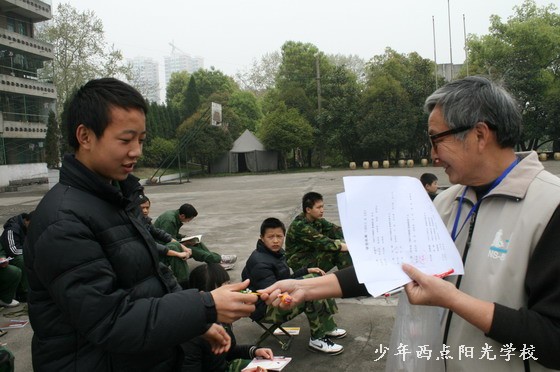 戚教授别开生面的把这堂课搬到了室外,通过‘解扣’、‘手链’等五个心理素质拓展小游戏来启发学生对团结就是力量的认识和理解。每当做完一个小游戏戚教授就有一个点评,对表现比较好的,动作准确的同学给予肯定,对不足之处也给予纠正和鼓励,同学们热情很高,在玩中得到了很大启发;整个过程很紧凑,所有教员也积极参与、全心配合。