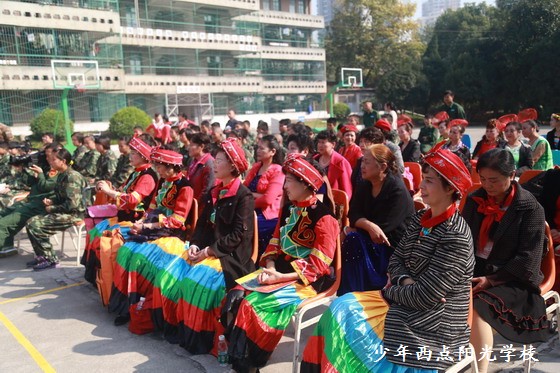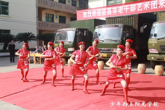 11月6日上午,宜昌市老干部艺术团一行40余人,来到我校慰问演出,为我校全体师生奉献了一台精彩的文艺大餐。陈锋校长代表学校发表致辞,对市老干部艺术团的到来表示热烈的欢迎和衷心的感谢。在此次文艺演出中,市老干部艺术团表演了舞蹈、独唱、快板、诗朗诵等10多个文艺节目,其中舞蹈《最美的歌儿唱给妈妈》、歌舞表演《三峡•我的家乡》、群口快板《美丽宜昌我的家》等节目充满激情,催人奋进,表达了老同志们热爱祖国、热爱家乡、热爱生活的情怀。特别是他们还专门针对我校的教育特色,编排了舞蹈《我为教员洗衣裳》和诗朗诵《母亲的泪》,使学生们在观看演出中受到了一次深刻的教育。我校学生也表演了背诵《弟子规》、军体拳、太极拳等节目,向艺术团的同志们展示了我校学生们良好的精神风貌。市老干部艺术团的同志们虽然从各条战线不同岗位退下来了,但他们仍以关心青少年的健康成长为己任,不辞劳苦,以寓教于乐的方式,为培育祖国下一代继续发挥余热。演出结束后,参演的各位爷爷奶奶纷纷与学生们合影留念,并在学校食堂和同学们共进午餐!