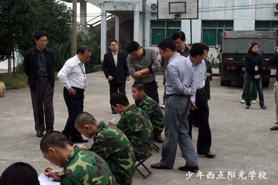 青团湖北省委副书记吴朝安同志、权益部部长蔡卿同志在共青团宜昌市委副书记任蔚同志的陪同下,来到我校调研。在陈锋校长、党支部周纯荣书记的陪同下,吴副书记一行兴致勃勃地参观了我校办公楼、文化课教室、餐厅、学生宿舍、行军宿营车、行军餐车等教育训练和生活设施,并和部分学生代表进行了面对面座谈交流。吴书记勉励同学们,要珍惜在少年西点阳光学校学习的机会,正确认识自己,改变自己,树立信心,做一个对社会有用的人。
